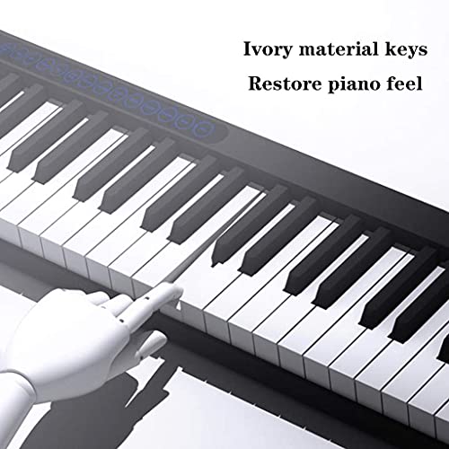 Slim: Bluetooth-verbinding, APP-onderwijs, gemakkelijke toegang voor beginners zonder basiskennis, eenvoudige en gemakkelijk te begrijpen leertutorials, zodat beginners zonder basiskennis en onwetendheid gemakkelijk aan de slag kunnen, en de leermodus van spelen en leren maakt het leren van piano interessanter .